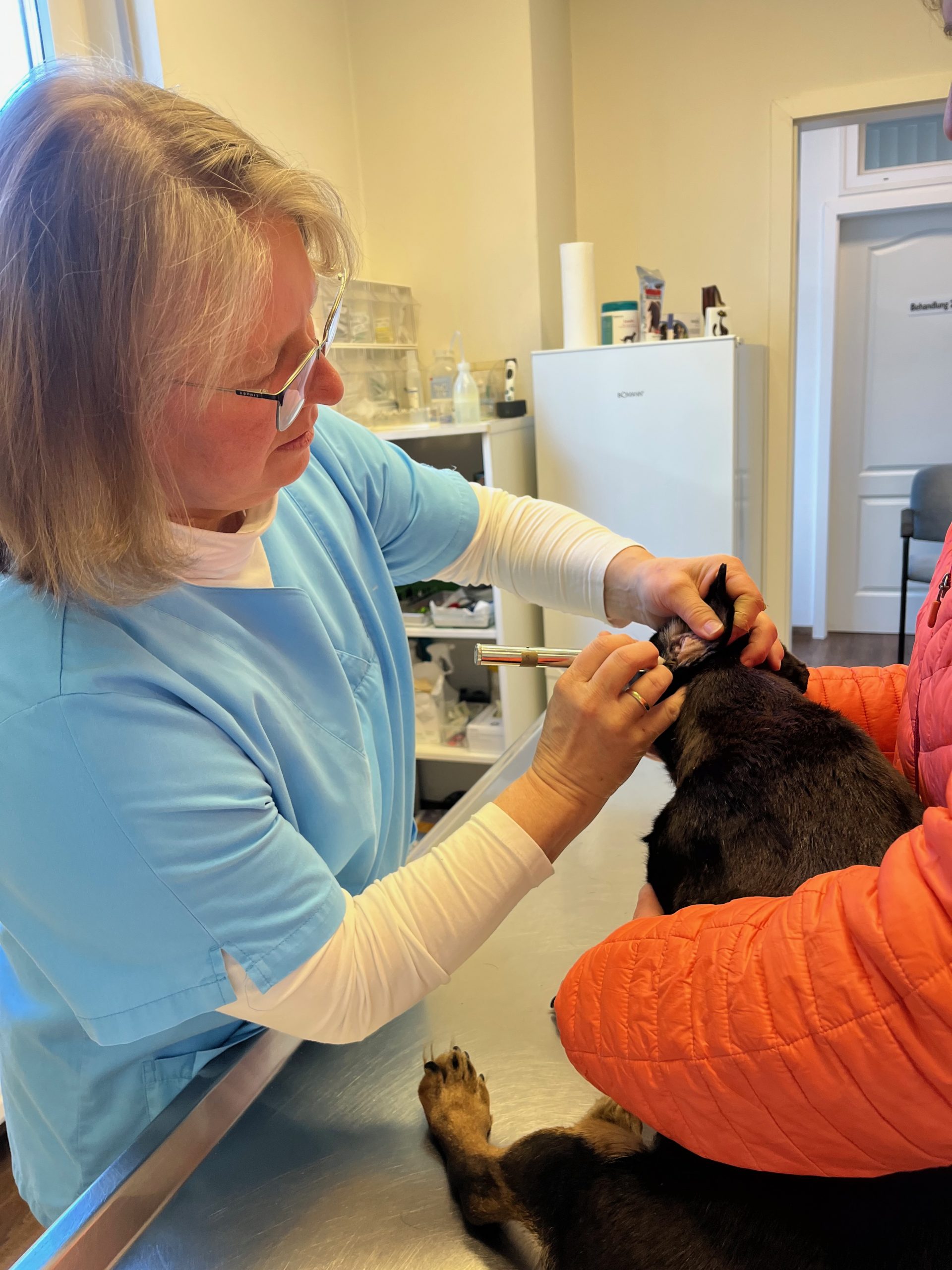 Eine Benutzung von normalen Akupunkturnadeln wie beim Menschen ist nicht möglich, weil die Nadeln im Tierohr nicht so gut toleriert werden wie am Körper. Beim Kopfschütteln können sie wieder herausgeschleudert werden.